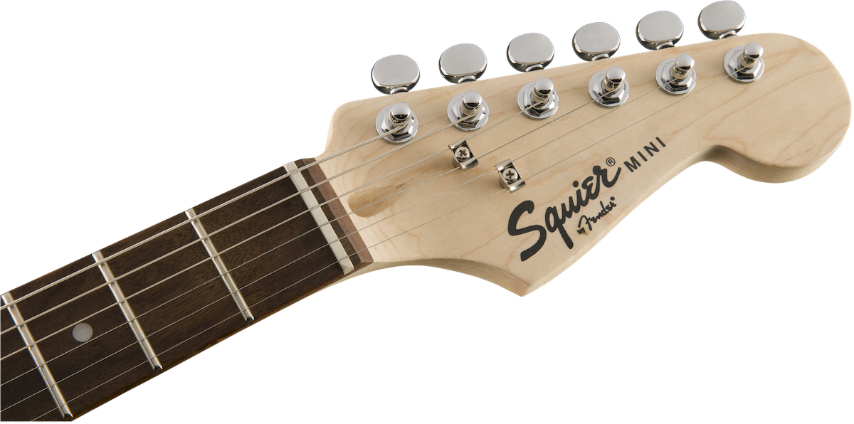 Fender Squier Mini Stratocaster v2 Pink Electric Guitar Headstock