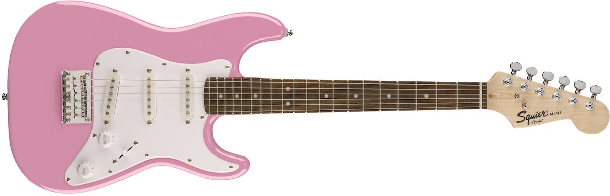 Fender Squier Mini Stratocaster v2 Pink Electric Guitar Side