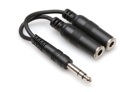 Hosa YPP-118 Stereo 1/4″ Male to Two 1/4″ Stereo Females. This cable is designed to duplicate a stereo signal. It is ideal for use as a headphone adaptor, adapting one headphone jack to two headphones.